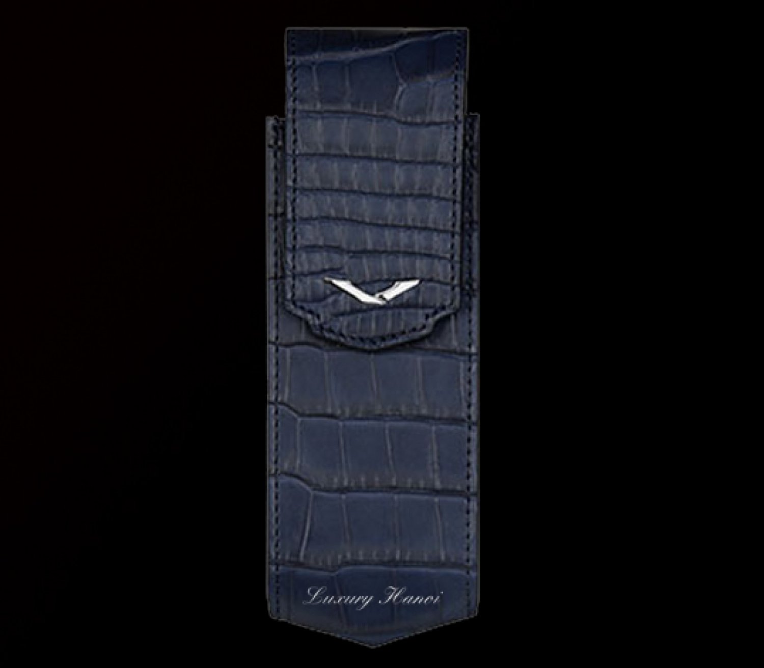 Bao da Vertu da cá sấu xanh navy khuy vàng