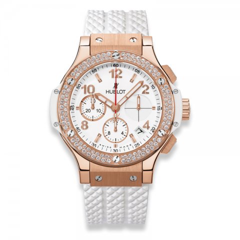 Các kim mạ vàng được đánh bóng với kim giây màu trắng phát quang và đồng hồ bấm giờ màu đỏ