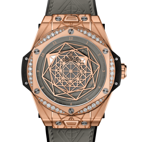 Vàng King 18K được đánh bóng với trang trí hình lục giác do Maxime Buchi thiết kế Bộ 48 viên kim cương tổng cộng 0,70ct với 6 ốc vít titan hình chữ H