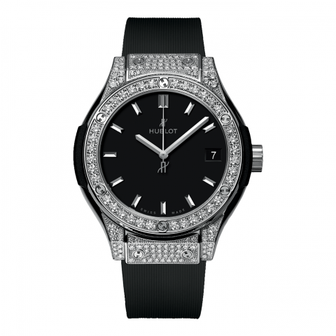Vỏ titan được đánh bóng: toàn bộ mặt trên của vỏ được đính 110 viên kim cương cắt sáng chói nặng tổng cộng khoảng 0,59 carat