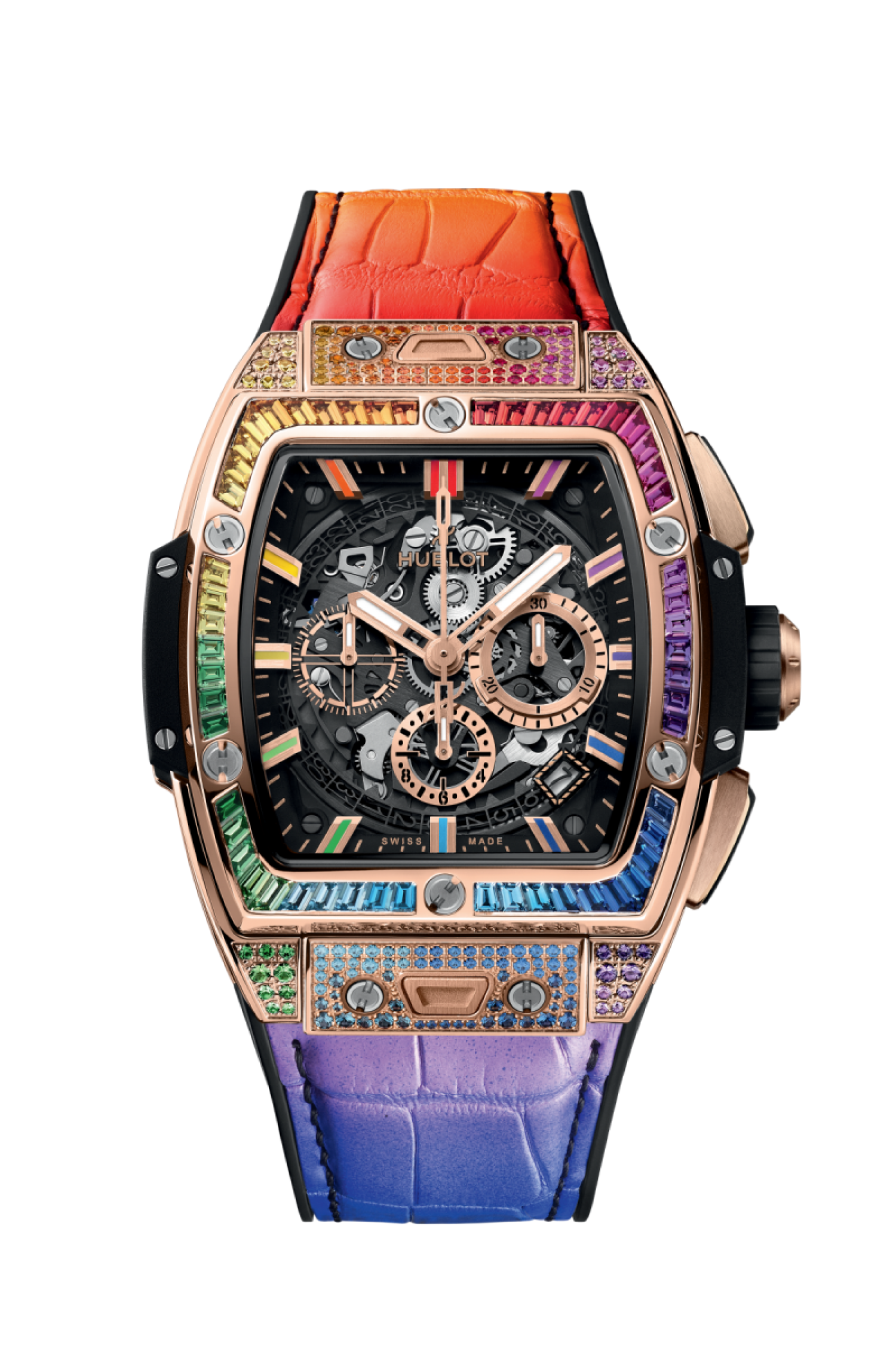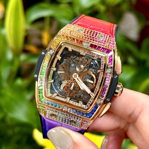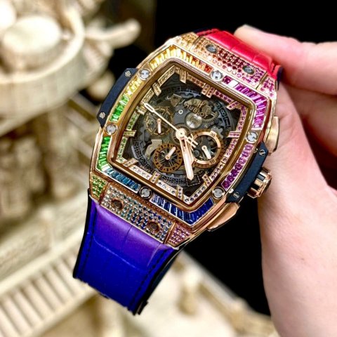 Vàng King 18K đánh bóng và hoàn thiện bằng satin đính 156 viên đá quý màu