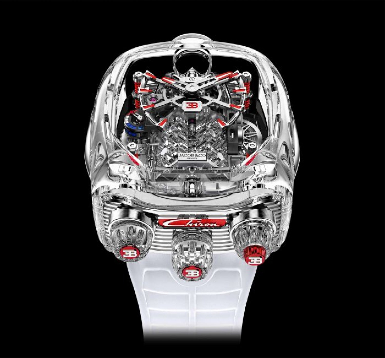 Sản xuất Jacob&Co. Cuộn dây bằng tay JCAM37; Kích thước: 41,7x36mm; Chiều cao: 15,60mm; Thành phần: 578; Đồ trang sức: 51; Hệ thống chống sốc: Incabloc; Dự trữ năng lượng: 60h; Tần số: 21'600 rung/h (3Hz).
