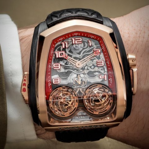 Mặt số: Sapphire hun khói có khắc chữ “Jacob&Co.” được áp dụng Logo, Vòng trong Neoralithe màu đỏ có vạch chia thứ hai;