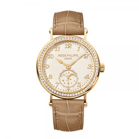 Chất liệu vành bezel: Viền và vỏ bằng vàng hồng 18K được đính 66 viên kim cương theo hình xoắn ốc (~.52 ct)