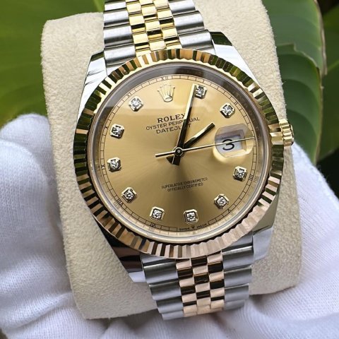- Mặt quay số:vàng sâm banh,thanh chỉ giờ gắn kim cương