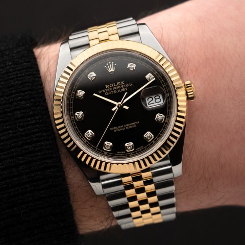 - Mặt quay số: màu đen ,thanh chỉ giờ đính kim cương