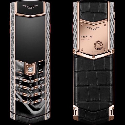 Vertu Signature S Rose Gold Paves Diamonds Black Alligator