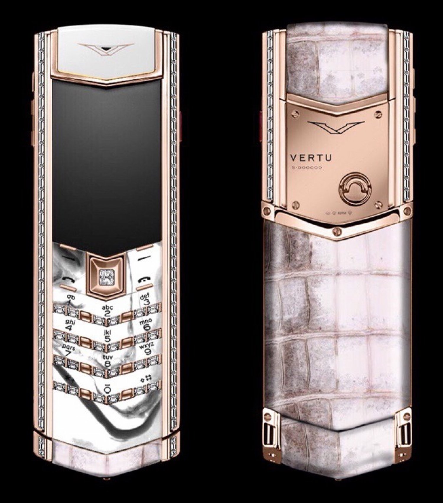 / Vertu Signature S Rose Gold Baguette Diamonds White Alligator