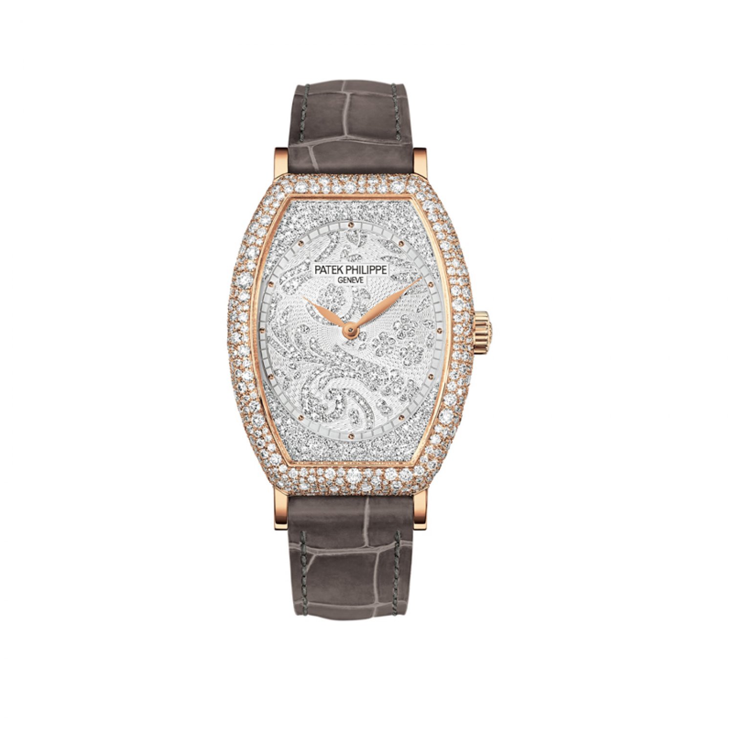 Vỏ được đính 480 viên kim cương (~3,31 ct), thiết kế không có lưới. Bộ mặt số bằng vàng được chạm khắc bằng tay với 367 viên kim cương (~0,56 cts), vạch chỉ giờ bằng vàng cabochon. Bộ khóa ngạnh đính 26 viên kim cương (~0,15 ct). Tổng cộng 873 viên kim cương: ~4,02 ct.