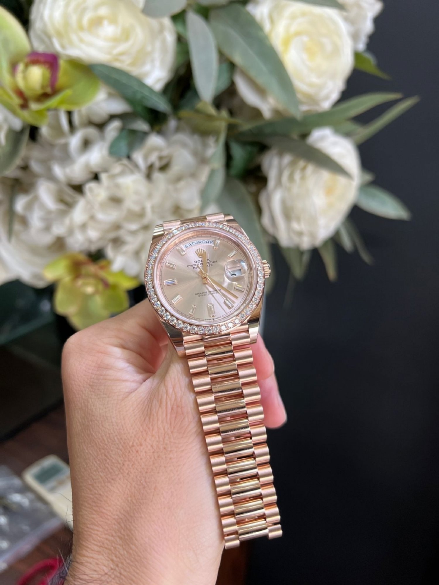 Đồng hồ Rolex Day-Date 40 Rose Gold Sundust Diamond Dial & Diamond Bezel 228345RBR