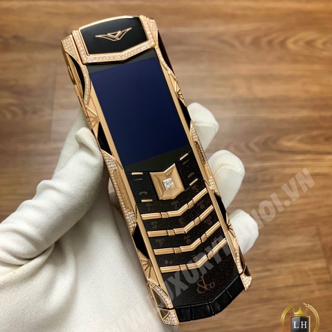- Khung của Vertu Signature S được làm bằng vàng hồng nguyên khối đính kim cương