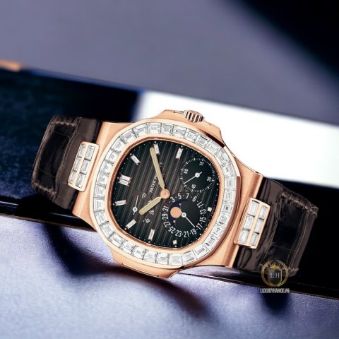 Dây đeo: cá sấu màu nâu sô-cô-la sáng bóng. Khóa gập Nautilus.