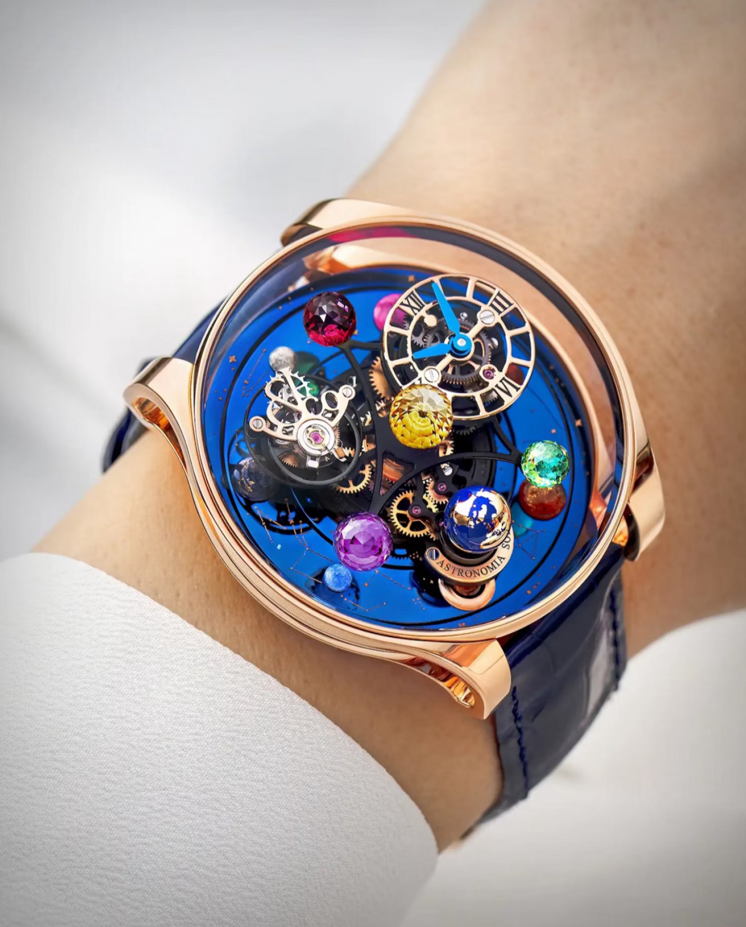 Đế nền: Titanium xanh với 7 hành tinh bằng đá cắt Cabochon và chòm sao vàng hồng