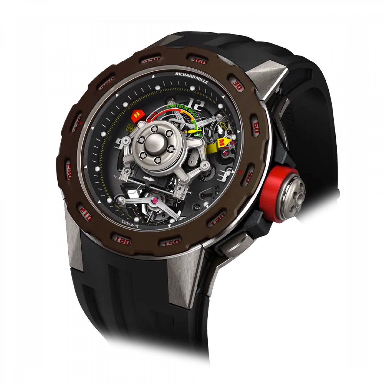 Chuyển động tourbillon lên dây bằng tay với giờ, phút, cảm biến g quay, chỉ báo dự trữ năng lượng và bộ chọn chức năng.