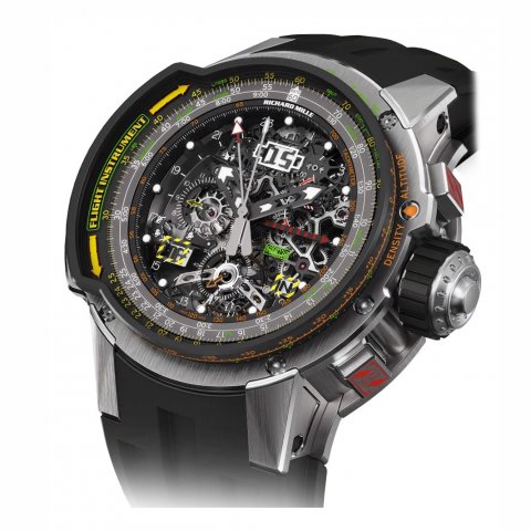 Chuyển động tourbillon lên dây thủ công với giờ, phút, giây lúc 6 giờ, chức năng UTC, ngày ngoại cỡ, đồng hồ bấm giờ flyback, bộ đếm giây và phút trung tâm, tổng cộng 12 giờ lúc 9 giờ, chế độ đếm ngược, bộ chọn chức năng và dự trữ năng lượng chỉ số.
