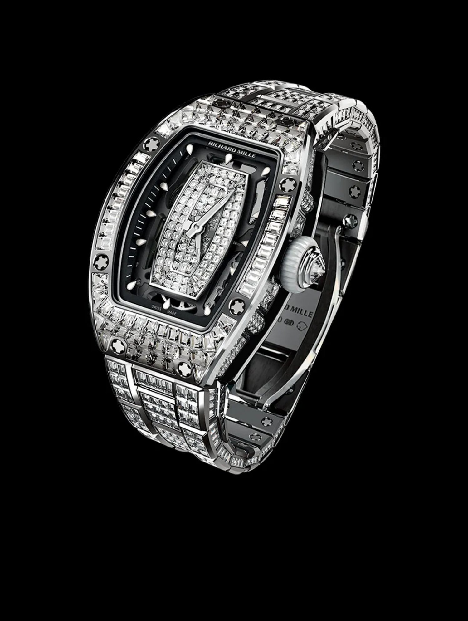 RICHARD MILLE RM010 SKELETONISED ROSE GOLD FULL CUSTOM BAGUETTE DIAMOND PAVE 95%
