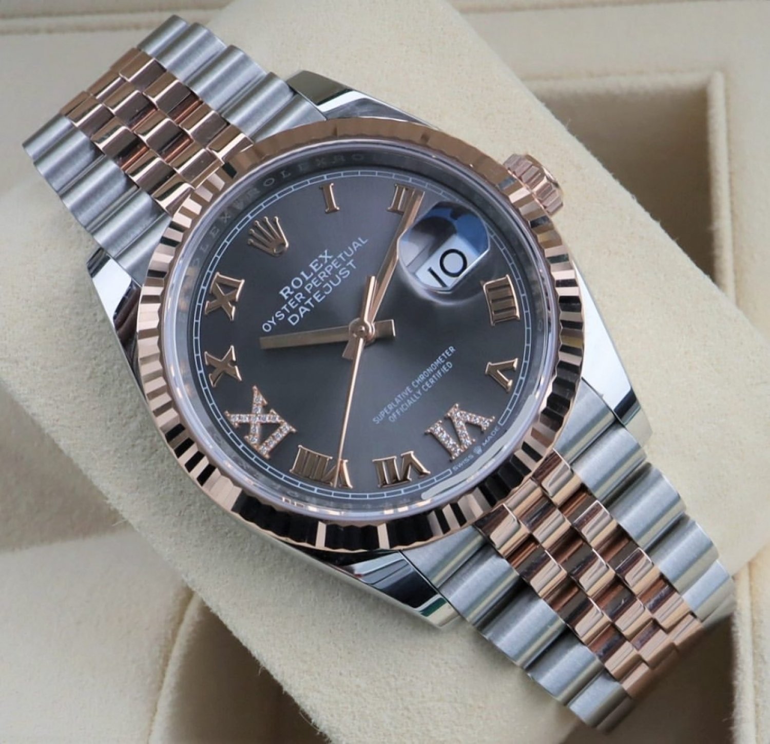 Đồng Hồ Rolex Datejust 36mm 126231 Mặt Số Xám Cọc Số La Mã Nạm Kim Cương