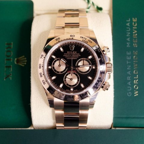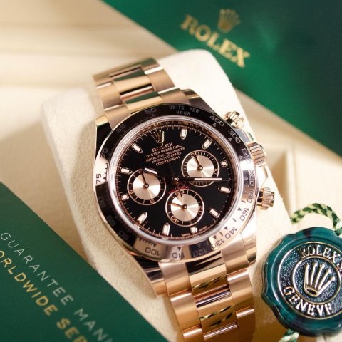 - Núm chỉnh giờ: Làm bằng vàng hồng và khắc nổi logo Rolex, có 02 nút phụ bấm giờ thể thao