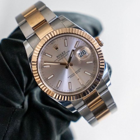 - Chất liệu thân đồng hồ: thép không gỉ kết hợp vàng hồng 18k