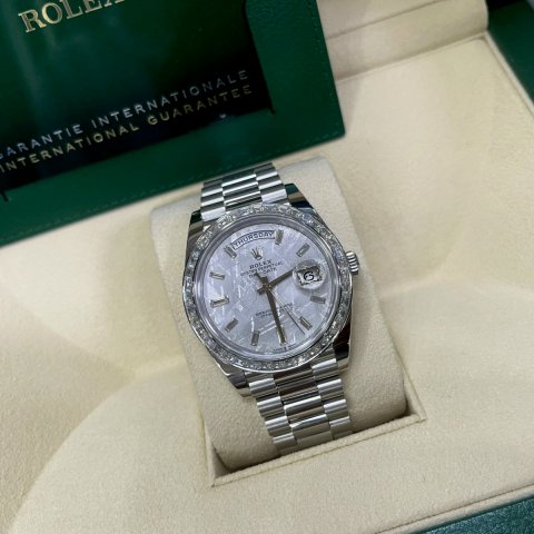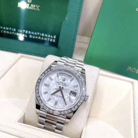Đồng Hồ Rolex Day-Date 40mm Platinum 228396TBR Meteorite Baguette