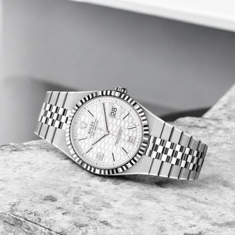 Đồng hồ Rolex Land-Dweller 40mm bằng Thép và vàng trắng với mặt số họa tiết tổ ong màu trắng tinh khôi 127334