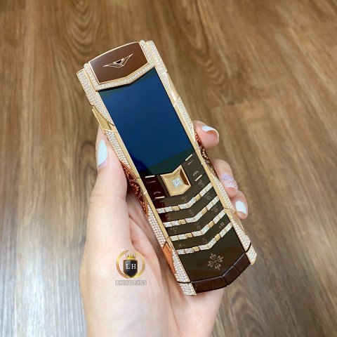 - Khung của Vertu Signature S được làm bằng vàng hồng nguyên khối đính kim cương