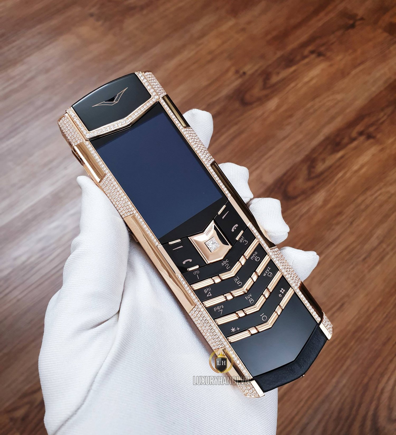 - Khung của Vertu Signature S được làm bằng vàng hồng nguyên khối đính kim cương