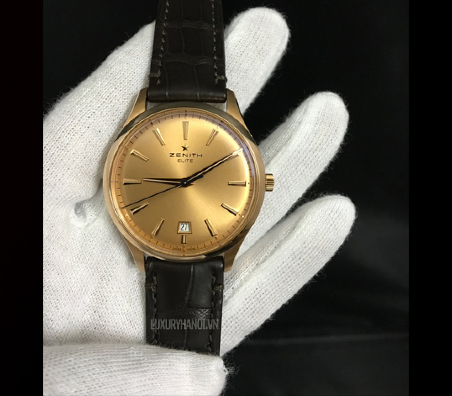 • Núm chỉnh giờ: Làm bằng vàng nguyên khối và khắc nổi logo Zenith