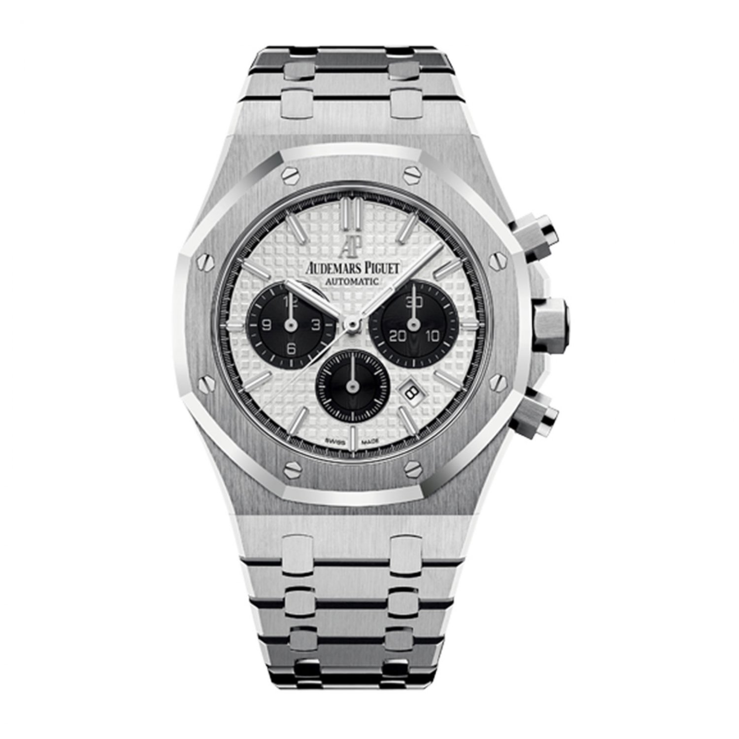 Màu mặt số : Mặt số có tông màu bạc với hoa văn “Grande Tapisserie”, bộ đếm và vùng bên ngoài màu đen, vạch chỉ giờ bằng vàng trắng và kim Royal Oak có lớp phủ phát quang