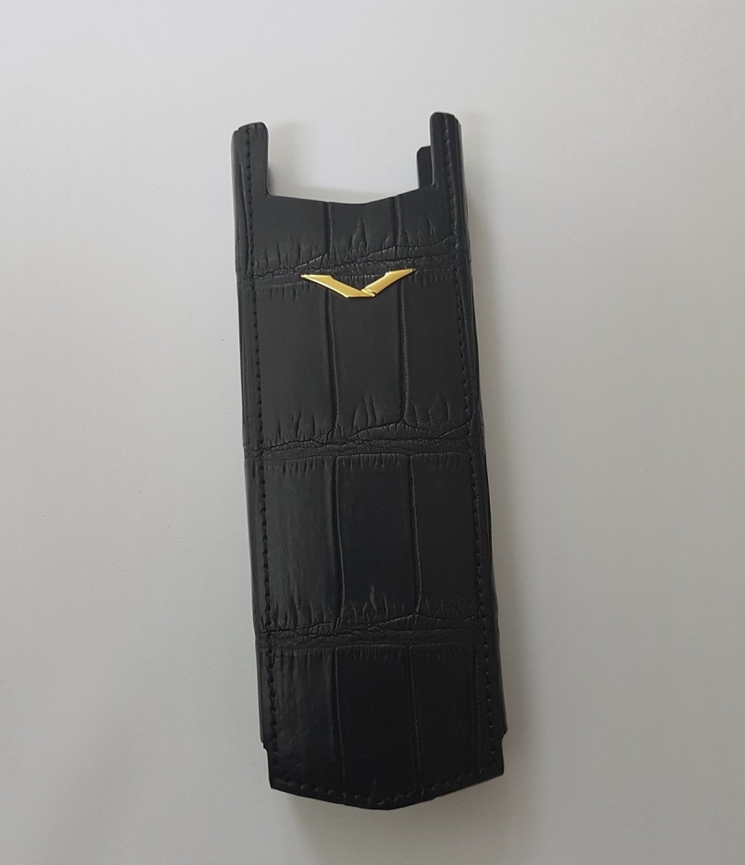BLACK LEATHER VERTICAL CASE WITH YELLOW GOLD