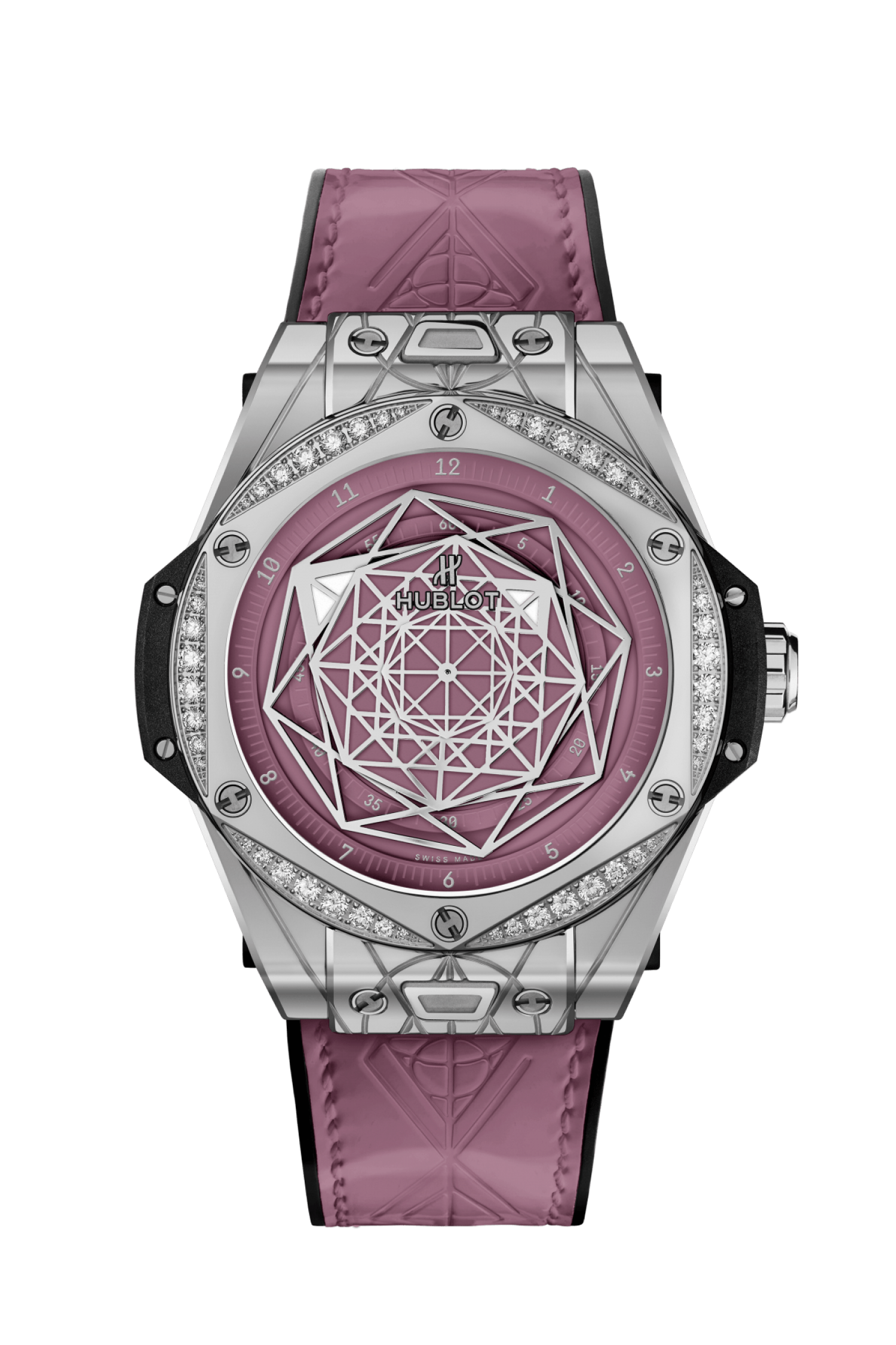 Thép không gỉ được đánh bóng với trang trí hình lục giác Được thiết kế bởi Maxime Buchi Bộ 48 viên kim cương tổng cộng 0,70ct