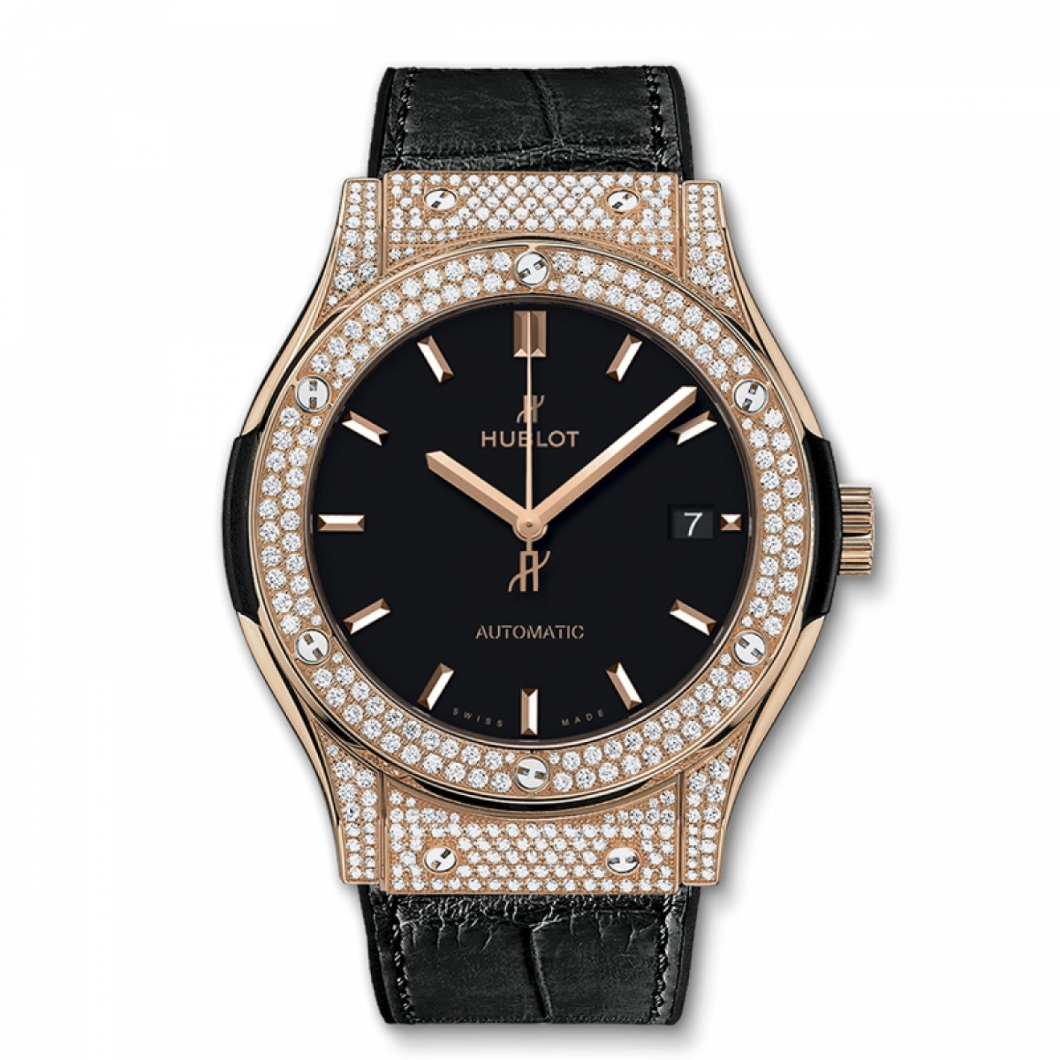 • Chất liệu thân đồng hồ: vàng hồng 18k gắn kim cương