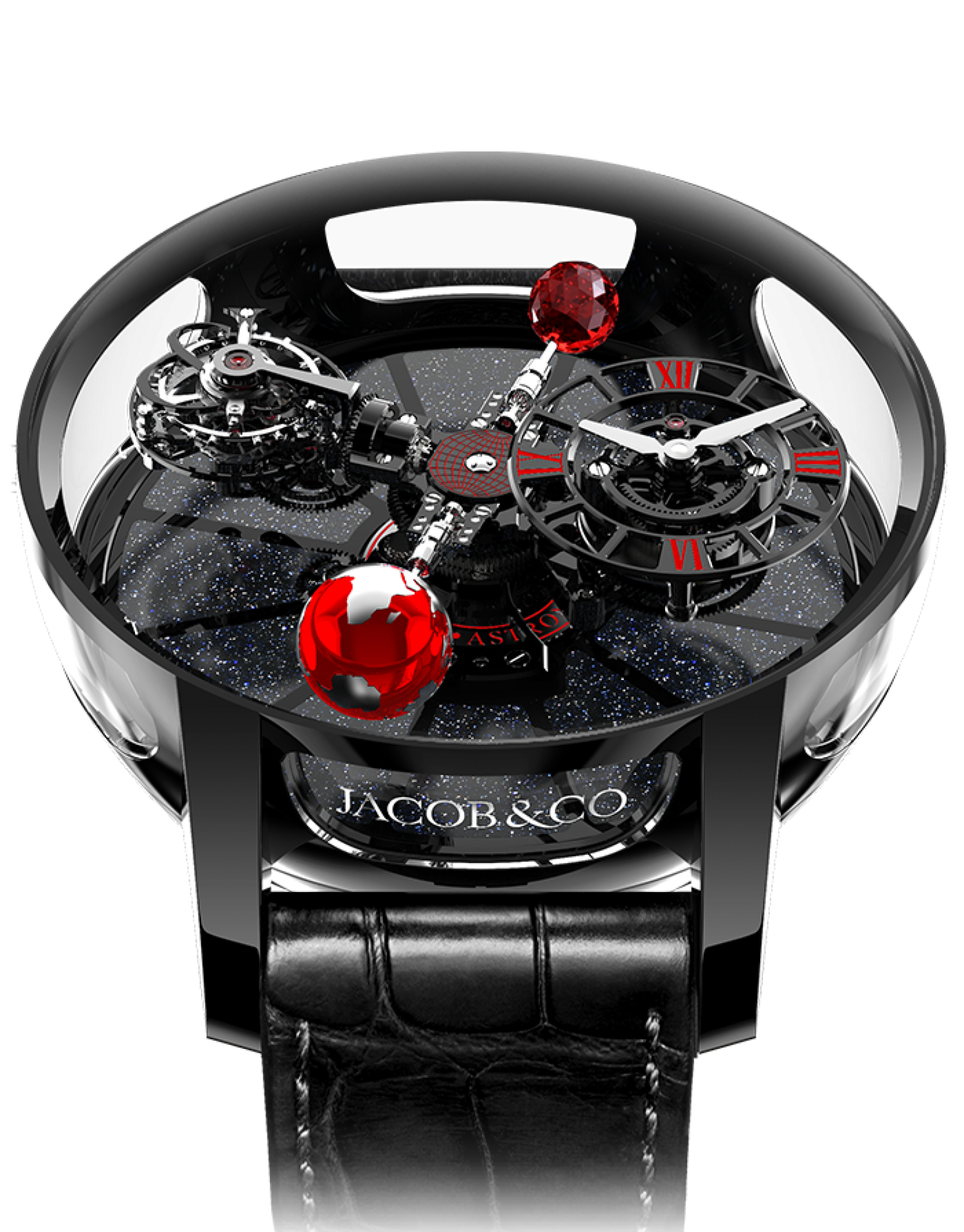 CHỨC NĂNG: Quay số giờ, phút Quay trong 10 phút trên Trục trung tâm, Hệ thống bánh răng vi sai được cấp bằng sáng chế; Viên kim cương hình cầu 288 mặt Quay trong 30 giây trên 2 trục (Trọng lượng: 1 carat; đường cắt Jacob độc quyền) Quả cầu sơn mài magiê Quay trong 30 giây trên 2 trục; Lồng Tourbillon hấp dẫn Quay trên 3 trục: Trục thứ 1: trong 60 giây, Trục thứ 2: trong 2,5 phút, Trục thứ 3: Trục giữa trong 10 phút.
