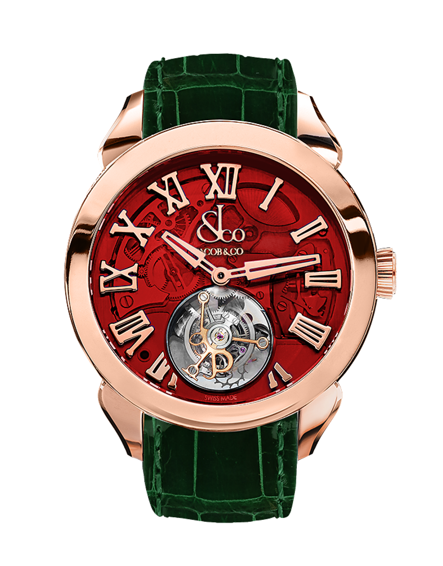 CHẤT LIỆU: Vỏ vàng hồng 18K; Mặt số pha lê khoáng màu đỏ; Áp dụng Logo và chữ số La Mã "Jacob&Co" bằng vàng hồng 18K.