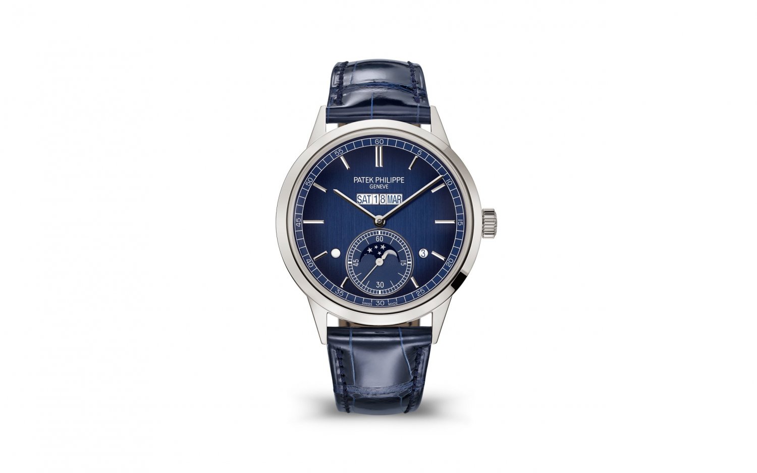 Chuyển động cơ học tự lên dây. Cỡ nòng 31‑260 PS QL. Lịch vạn niên nội tuyến. Chỉ báo ngày, thứ, tháng, năm nhuận và ngày/đêm trên các khẩu độ. Giây nhỏ.