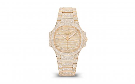 Vàng hồng, đính kim cương. Khóa gập Nautilus nạm kim cương.