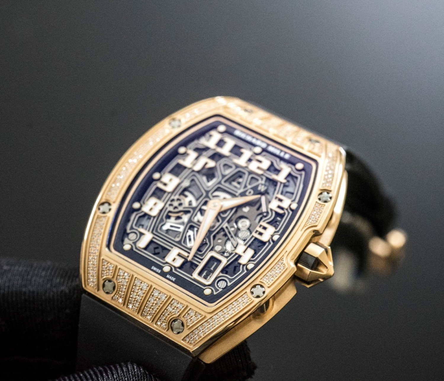 - Chất liệu thân đồng hồ : 18k Rose Gold, set Diamond