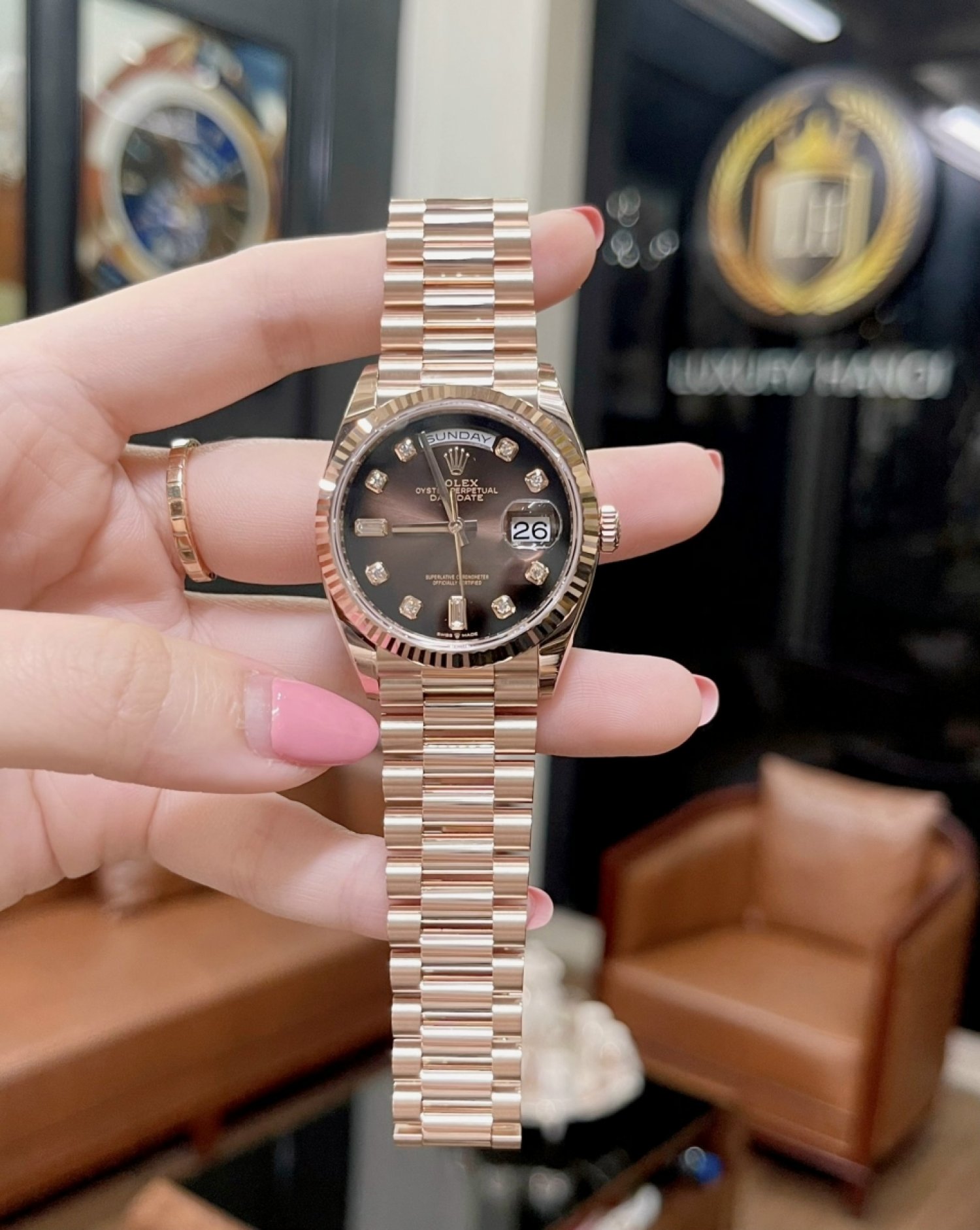 Đồng Hồ Rolex Day-Date 36mm 128235 mặt Số Ombre Nâu