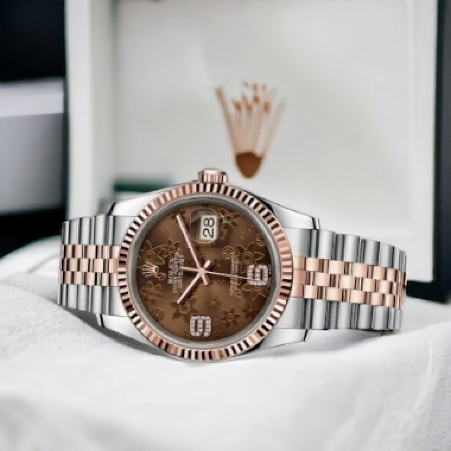 Đồng hồ Rolex Oyster Perpetual Datejust 116231 Chocolate floral motif set with diamonds 36mm