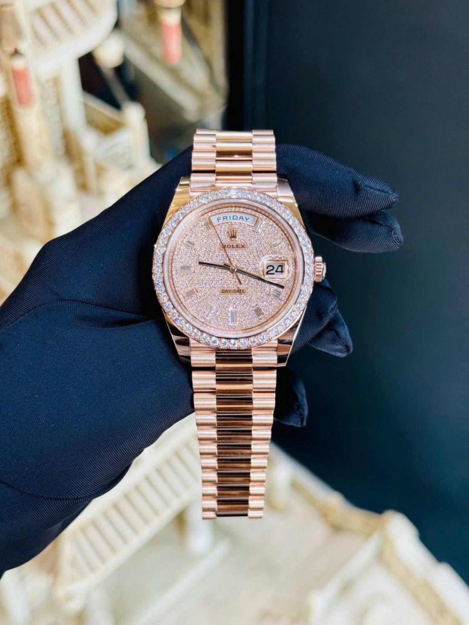 Rolex Day-Date 40mm Rose Gold Diamond Pave Dial & Diamond Bezel President Bracelet 228345RBR