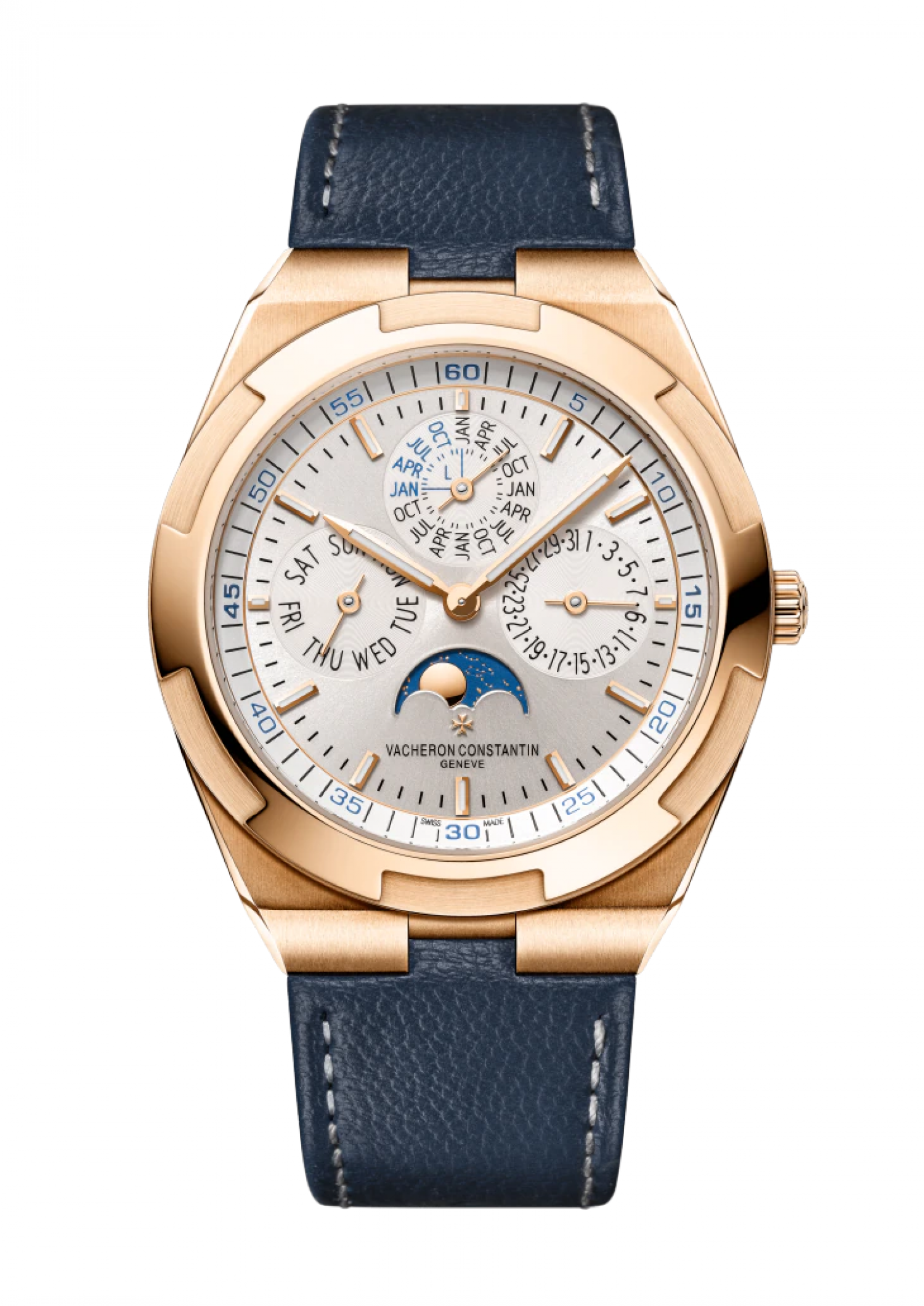 Chiếc đồng hồ bằng vàng hồng 18K này kết hợp một cách trang nhã giữa chức năng Chế tạo đồng hồ tinh xảo với tính thẩm mỹ thể thao. Với độ dày chỉ 8,10 mm, nó chứa lịch vạn niên siêu mỏng, hiển thị sẽ không cần phải điều chỉnh cho đến năm 2100. Lịch tuần trăng với bầu trời đầy sao và hai mặt trăng vàng bổ sung cho lịch. Nhờ có khóa gài và hệ thống hai dây đeo dễ thay thế – chiếc đồng hồ có thể được cá nhân hóa theo ý muốn của chủ nhân.