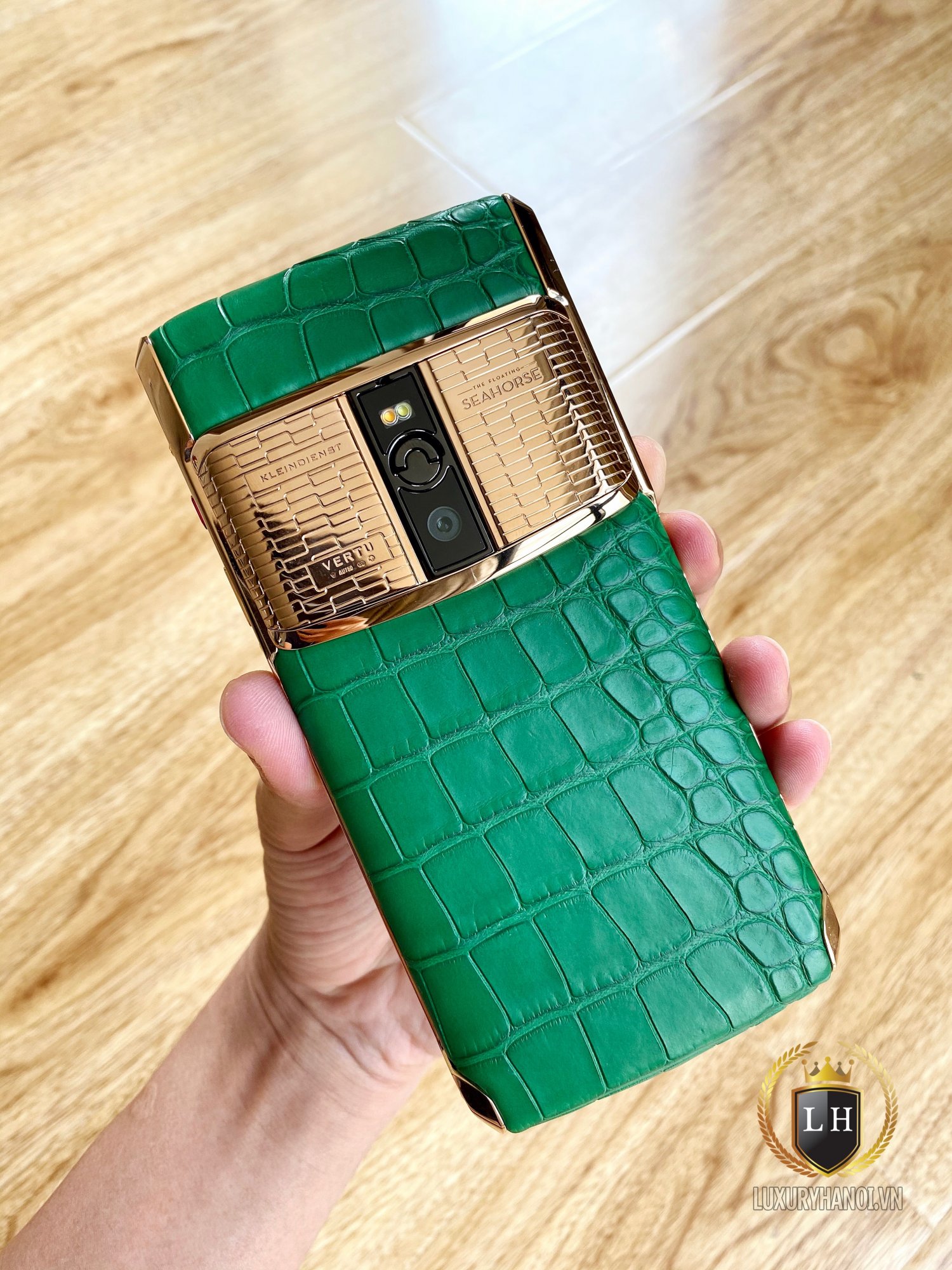 - Mặt sau được bọc da cá sấu màu nâu xanh